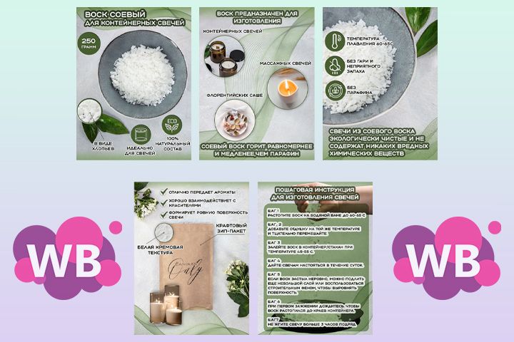 Инфографика 5 карточек для соевого воска для контейнерных свечей