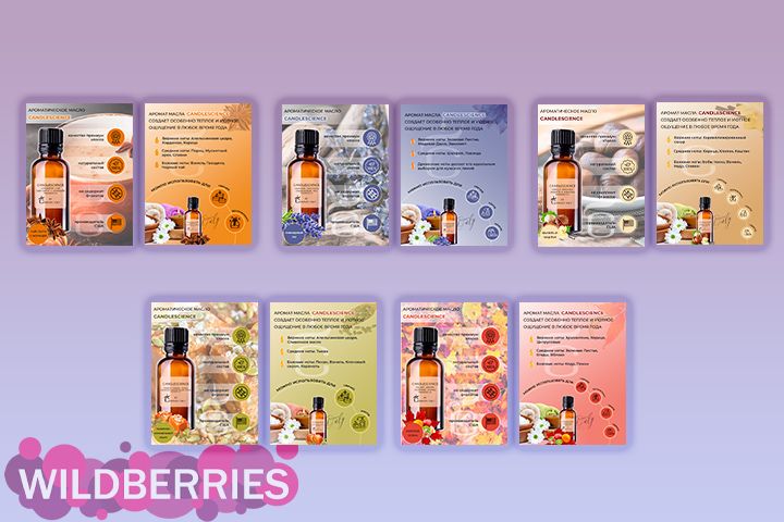 Инфографика для 5 ароматов эфирного масла Candlescience в одной концепции