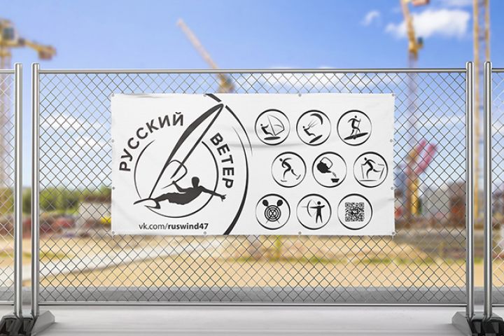 Растяжка для станции ветровых видов спорта. Подбор и частичная отрисовка иконок. Разработка логотипа оплачивалась отдельно.