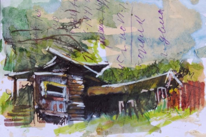 серия иллюстраций на тему русской деревни 10 эскизов акварелью для открыток