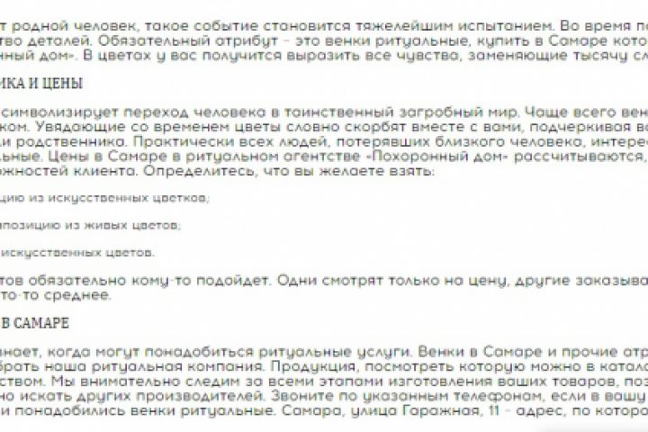 Продающая статья для ритуального агентства "Похоронный Дом"