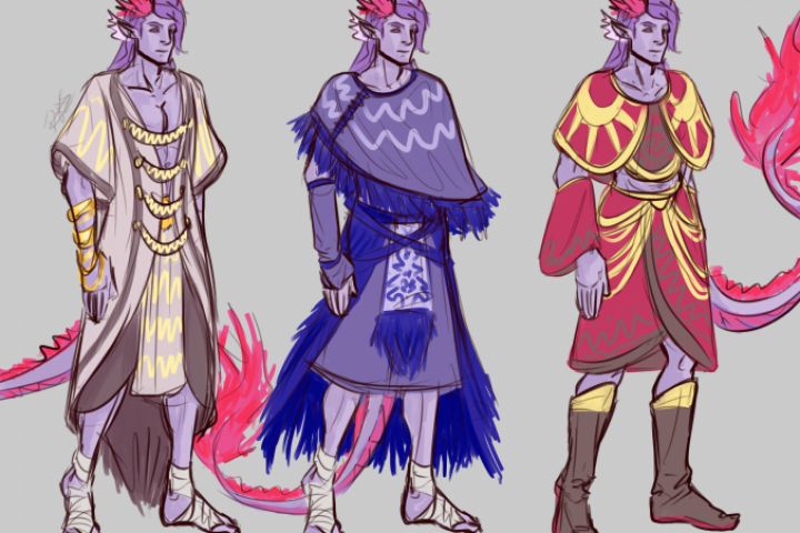 Скетчи с концептами для одежды персонажа