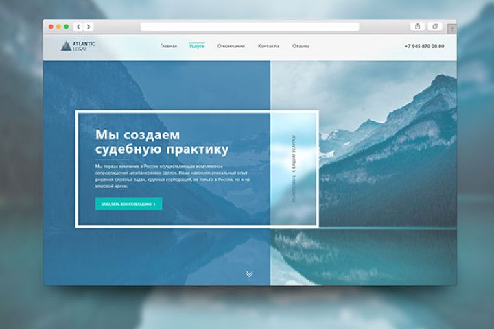 Дизайн сайт был разработан для компании Atlantic Legal. Данная компания оказывает широкий спектр юридических услуг. Дизайн сайта выполнен в стиле Fluent, разработанный компанией Microsoft.