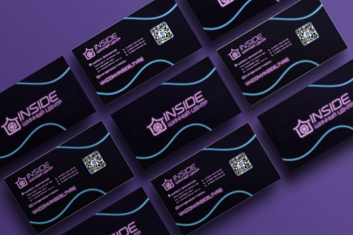 Принял заказ на визитку для шинного центра "Inside" стиль которого в неоне)