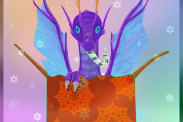 Новогодняя открытка с драконом-сладкоежкой. Photoshop 2019.