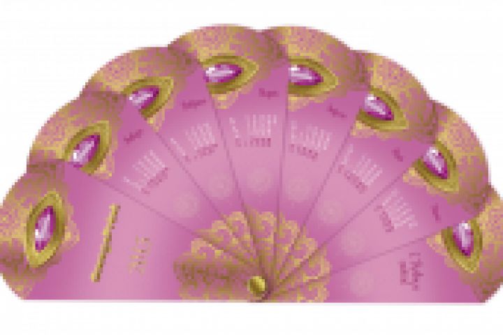 Конструкция веера разрабатывалась под конкретное производство под ключ с полным соблюдением всех технологических требований. Представляет из себя складывающийся и раскладывающийся трансформер. Конструкция уникальна в своем роде. Предложено было 2 варианта: один с календарной сеткой с двух сторон и поздравлением, другой с правилами веерного этикета. Разработана подарочная упаковка.