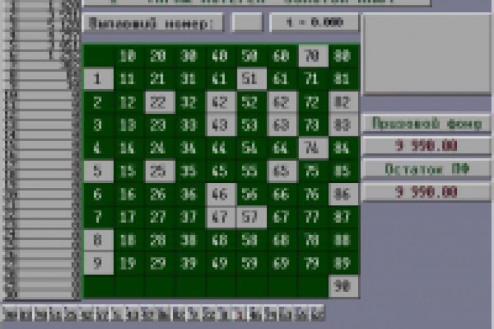 Мониторинг тиражей (MS Access), розыгрыш на TV (Borland C, ASM), система распространения билетов (MS Access), принтерный участок печати билетов (FoxProw)