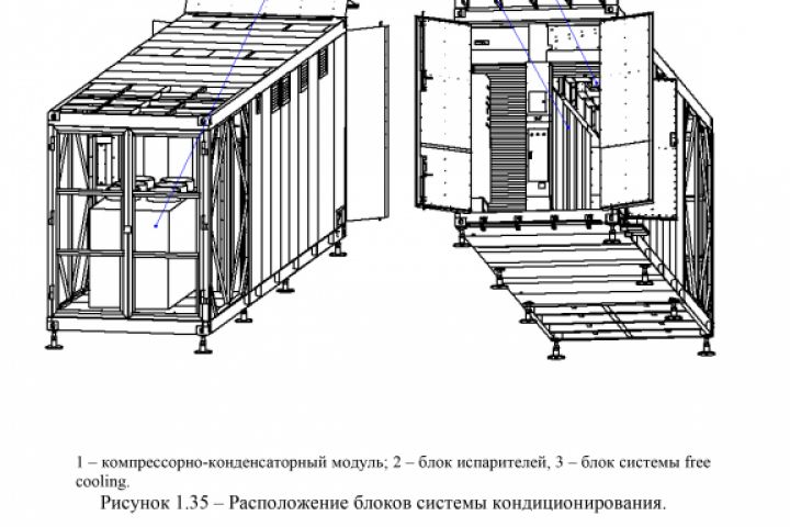 - рядный массив из стоек серверных для установки серверного оборудования и система его перемещения (актуатор);