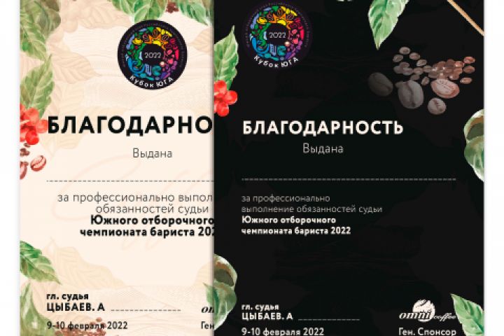 "Благодарность" для компании - ООО "Кофе ОМНИ"