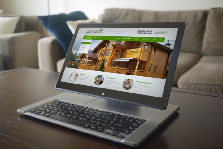 Дизайн сайта для компании "БрусСтройДом", которая занимается строительством домой из пеноблоков, клеенного бруса, оцилиндрованного бревна.