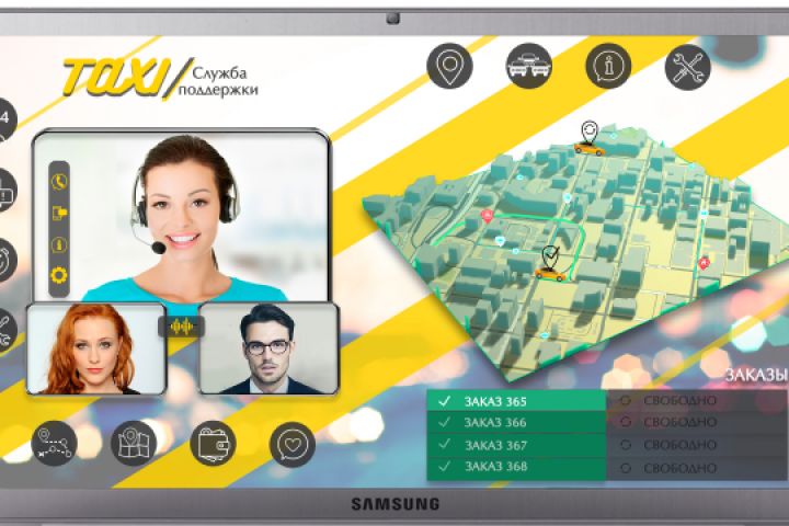 На макете отображен разговор с двумя собеседниками с оператором Службы такси.