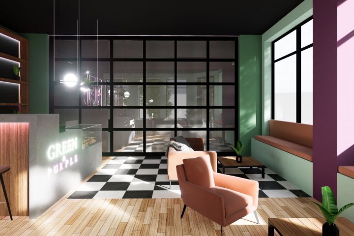 Были приняты решения, чтобы выполнить и транслировать в основном помещении. Решили переделать барную стойку, застеклить стену, за которой будет располагаться лаундж зона. Также нужны были кардинальные изменения по освещению и использованию иллюстраций.