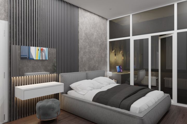 С заказчиком обговорили его предпочтение по стилю. Придерживались – Loft. Также уточнили информацию по детям – они несовершеннолетние, до 10 лет. Остановились на варианте сделать максимально удобную комнату для детей в розовых тонах. Остальные помещения – реализовали в строгом и минималистичном стиле.