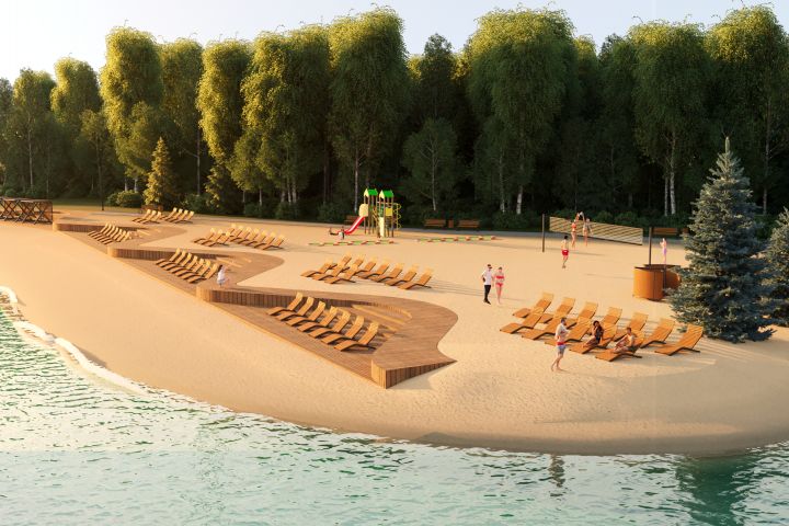 Разработка, моделирование и создание визуализацию пляжной зоны. В задачу входит разработка генплана, моделирование окружения и близлежащей застройки. Наполнение сцены МАФ и озеленение.