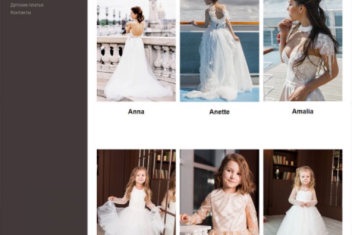 Небольшой он-лайн каталог для салона свадебный и вечерних платьев.. Сайт "под ключ" - дизайн, верстка, сборка, наполнение.