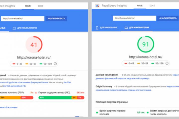 "Легкое" ускорение сайта. Ускорено: мобильная в 5 раз, десктопная в 2 раза.