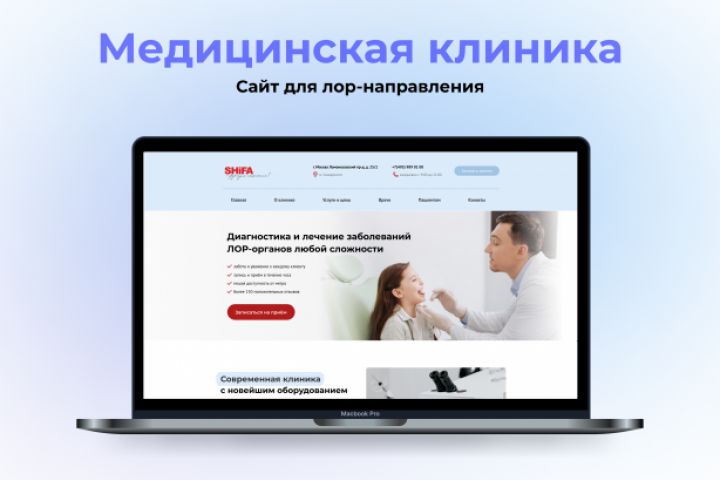Многостраничный сайт для московской многопрофильной медицинской клиники. Необходимо было сделать сайт для лор-направления, и при этом сохранить стилистику сайтов других направлений клиники.