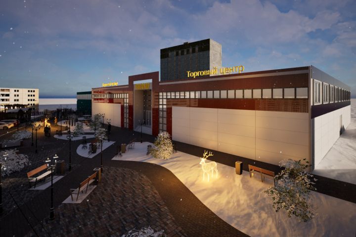 - Напротив ТСК (здания 2) и Административного здания (Здание 3) - парковку, фонари, искусственные декоративные искусственные деревья с подсветкой (настоящие деревья сажать не получится - крайний север). Напротив здания 1 (детскую площадку с элементами уличного спорта - скейт парк, турники и т п)