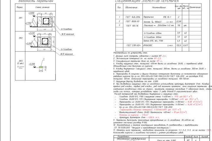- Ведомость перемычек. СПЕЦИФИКАЦИЯ ЭЛЕМЕНТОВ ПЕРЕМЫЧЕК