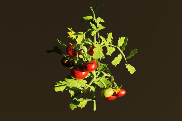 - Требуется создать модельку куста помидоры в программе Blender для рекламного ролика удобрений.