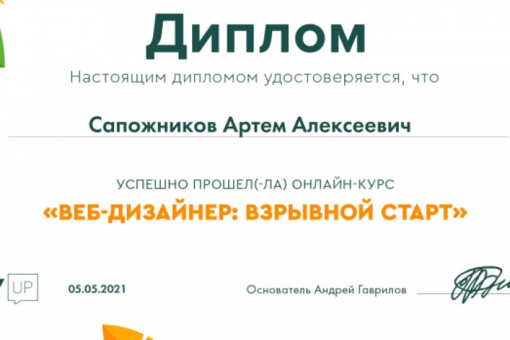 Диплом о прохождении онлайн-курса Андрея Гаврилова