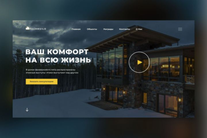 Этой работой горжусь больше всех остальных, это сайт для строительной компании, которая специализируется на постройках фахверных домов.