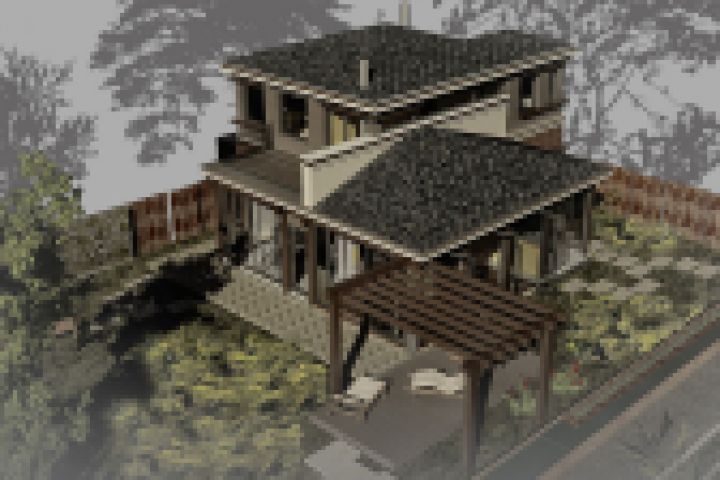 В основании обводненные суглинки, в связи с этим в качестве фундамента приняты буронабивные сави и ростверк. Несущие элементы дома: монолитный каркас, кирпичные простенки, стойки из клеенного бруса. Перекрытие деревянное, над балконом - монолитное.