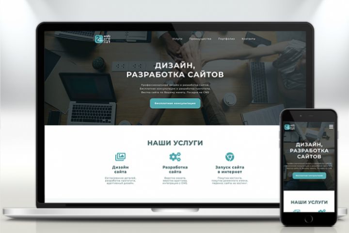 Сайт полностью адаптивный, т.е. будет отлично смотреться на всех устройствах, начиная от мониторов компьютеров и заканчивая экранами мобильных устройств