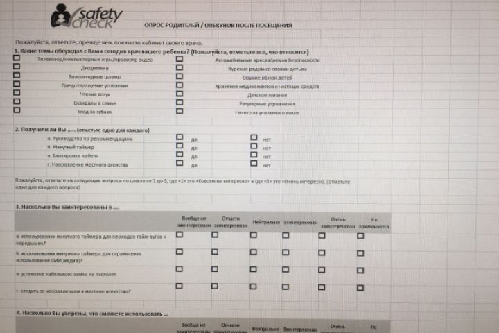 Перевод анкеты для родителей/опекунов после посещения доктора для осуществления обратной связи и участия в жизни семьи даже после обращения. Источник - стандарты JCI.
