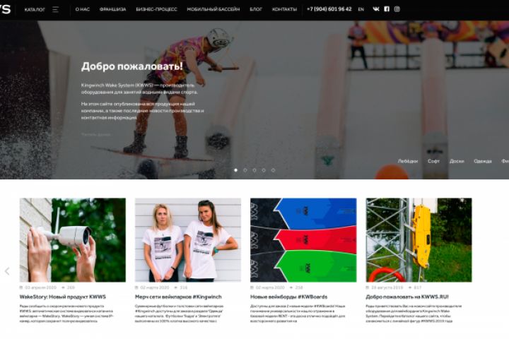 Kingwinch Wake System (KWWS) - производитель оборудования для занятий водными видами спорта. Сайт работает на движке ModX Revolution, реализована мультиязычность (русский, английский). Главной особенностью данной работы является каталог в виде 3d моделей продукции которые можно рассмотреть с разных сторон.