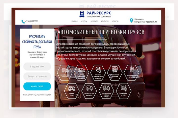 Сайт компании 000 "Рай-Ресурс". Перевозка грузов по России. Адаптивная верстка шаблона и страниц для CMS Wordpress с использованием Bootstrap 3.