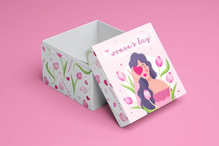 Дизайн подарочной коробки к международному женскому дню Главная иллюстрация + паттерн