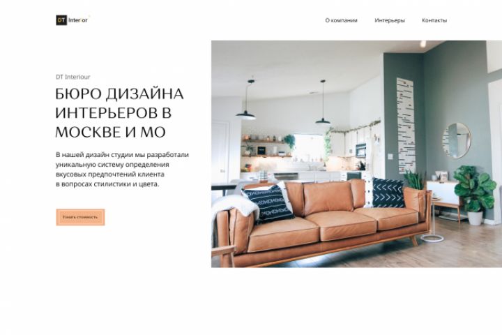 Дизайн-концепция «Бюро дизайна интерьеров» была сделана в рамках повышения квалификации. Это классический лендинг выполненный в минимализме. Лаконичный, чистый формат Landing page.