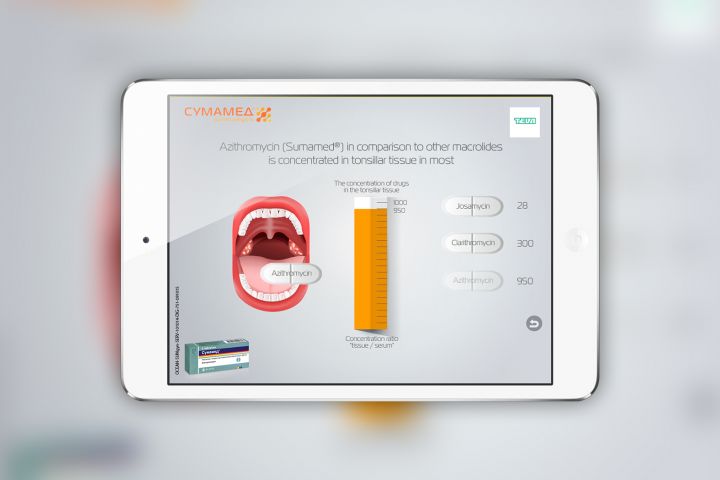 Визуализация работы антибиотика Сумамед с использованием иллюстраций и инфографики.