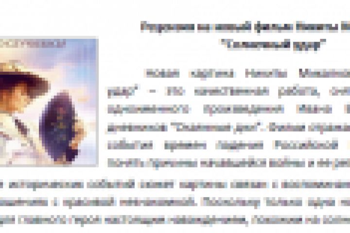 Рецензия на новый фильм Никиты Михалкова "Солнечный удар".