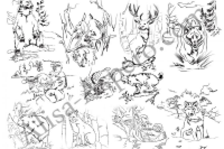 Отрисовка животных, птиц, рыб и сцен охоты и рыбалки для дальнейшего ипользования для фрезерования на двери.