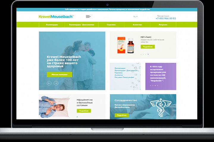 Корпоративный сайт бренда KREWEL MEUSELBACH - производителя лекарственных средств Валокордин, Геделикс, Регулакс и Аспектон.