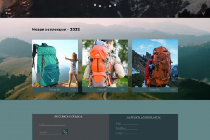 Дизайн интернет магазина туристических рюкзаков. проработанный до мелочей