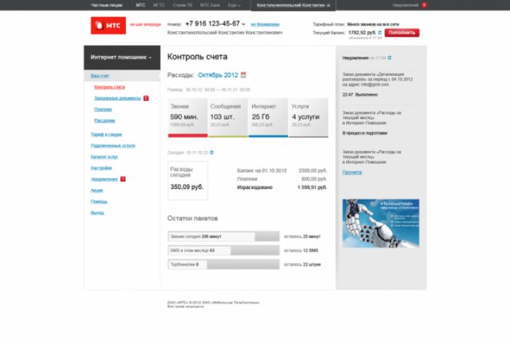 Вариант дизайна и более удобногоинтерфейса для компании МТС