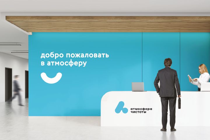 Разработка логотипа и фирменного стиля для сети химчисток "Атмосфера чистоты". Образ компании сформировали как педантичный, гибкий, лояльный сервис.