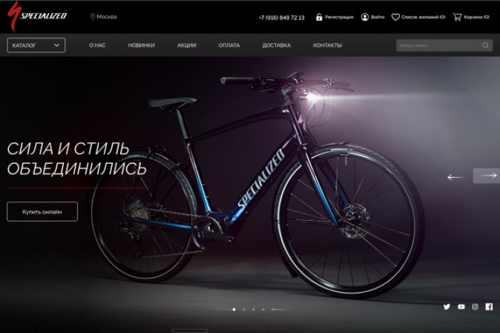 Дизайн сайта магазина велосипедов премиум сегмента Speсialized.