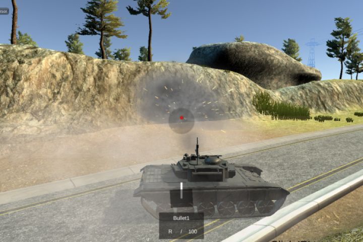 реализована физика отдачи при выстреле, искры и дым в месте попадания снаряда, несколько типов боеприпасов,