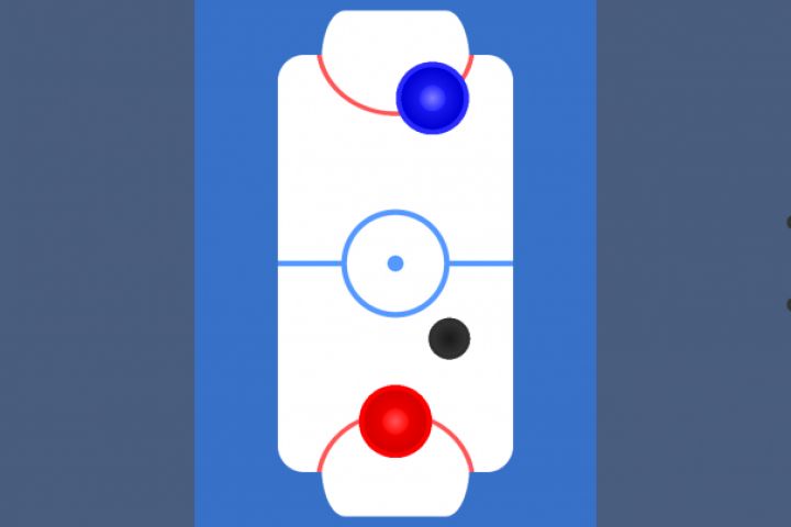 Симулятор аэрохоккея, пользователь может играть с компьютером или с другом на одном устройстве.