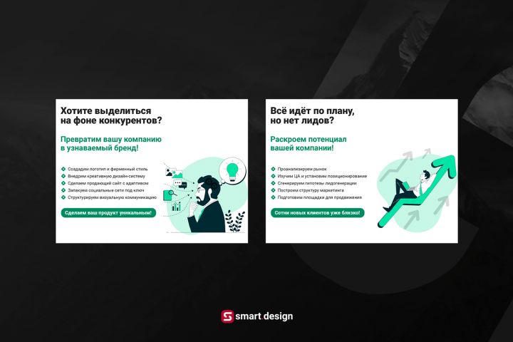 Баннеры для таргета/директа/маркетплэйсов: • От 1-ого дня. • От 1500 руб./шт. От 750 руб./итерация. • Исходники: .psd/.png/.pdf.