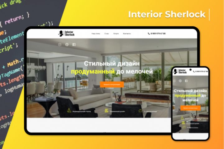 Верстка и программная часть лендинга студии дизайна Interior Sherlock.