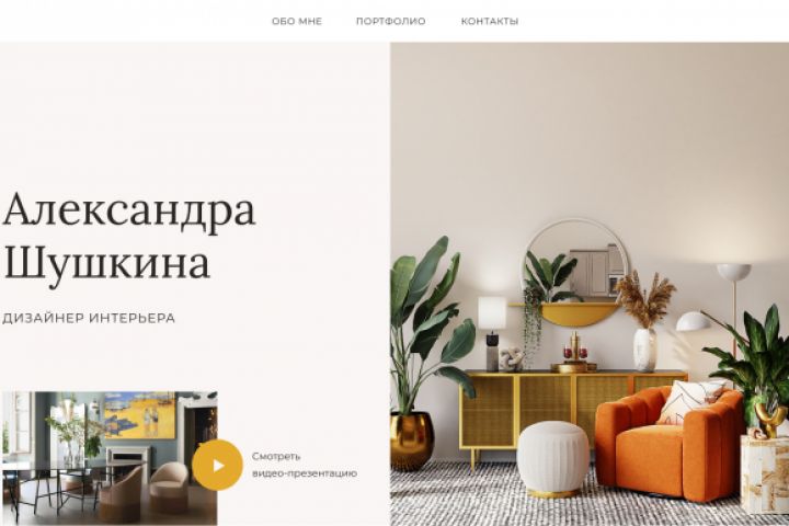 В данной работе создан дизайн сайта-портфолио дизайнера интерьера, с кликабельным портфолио, преимуществами работы с дизайнером, выбором удобного для клиента тарифа и формой обратной связи.