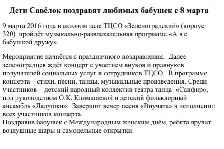 9 марта 2016 года в актовом зале ТЦСО «Зеленоградский» (корпус