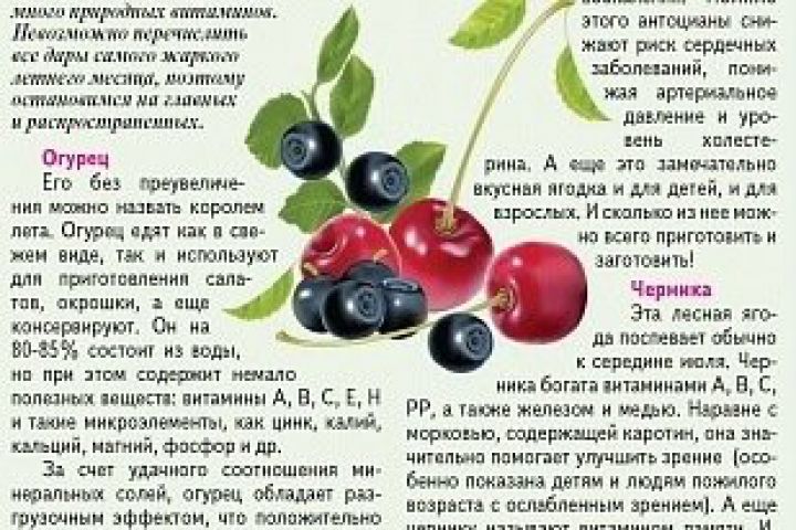 В июле созревают овощи, фрукты и ягоды, которые содержат в себе много