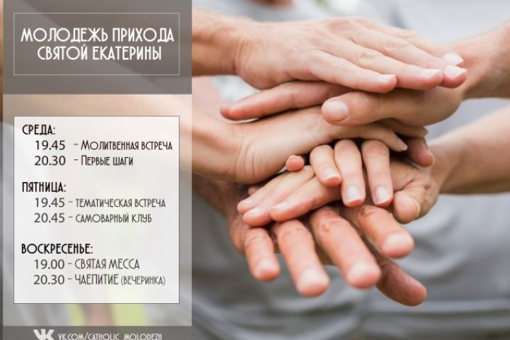 Расписание встреч молодежи базилики Святой Екатерины в Санкт-Петербурге.