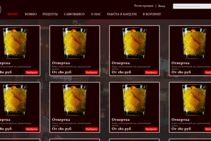 Проект веб-дизайна онлайн бара "БардЭль". Разумеется там могут быть самые разные коктейли, но это не влияло на суть дела и это лишь дизайн, по которому в последствии работал бы веб-разработчик.